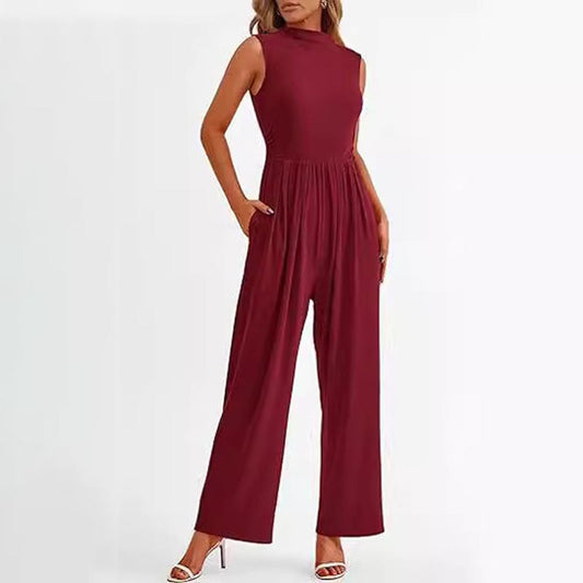 Women’s Sleeveless Solid-color Casual Wide-leg Jumpsuit