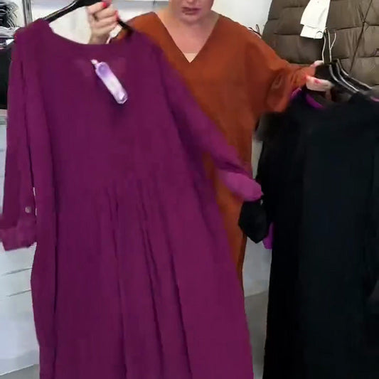 Casual Crewneck Color-Blocked Sweatshirt with Side Split