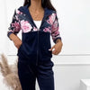 DISTINCTIVE FLORAL DESIGN - Stand out with unique, eye-catching floral print on the jacket. This vibrant botanical pattern adds fresh, feminine flair to the classic navy blue set, transforming a simple tracksuit into a refined statement piece.