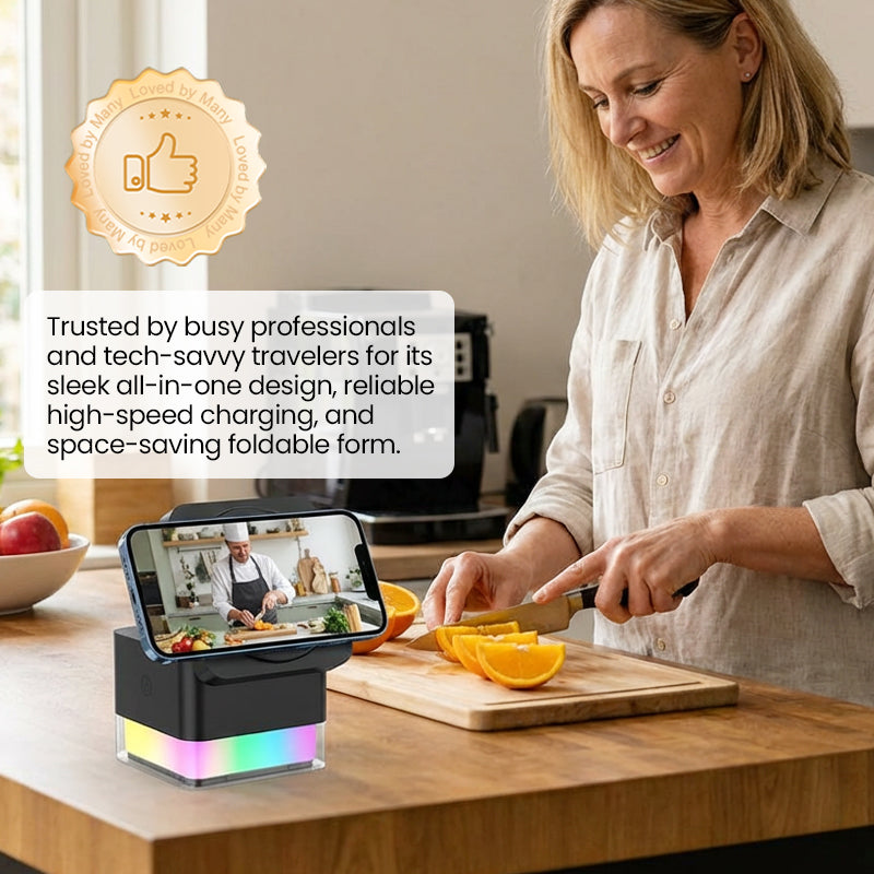 SNAP-AND-GO MAGNETIC CHARGING: The powerful magnetic connection instantly aligns and secures your Phone for stable and efficient charging. Enjoy hands-free viewing in both portrait and landscape modes while your device powers up.
