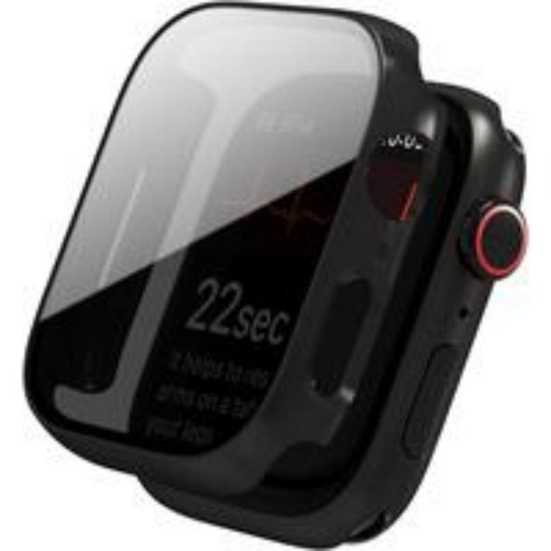 MILITARY-GRADE PROTECTION – Featuring an integrated case and screen protector design, this accessory combines a shock-absorbing TPU frame with ultra-hard tempered glass to withstand drops from high places. The round bezel helps protect the screen and crown from scratches.