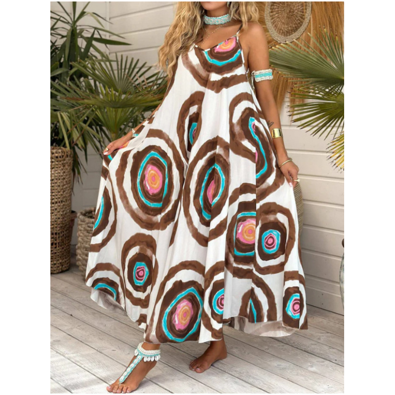 Boho Print Loose Fit Spaghetti Straps Dress