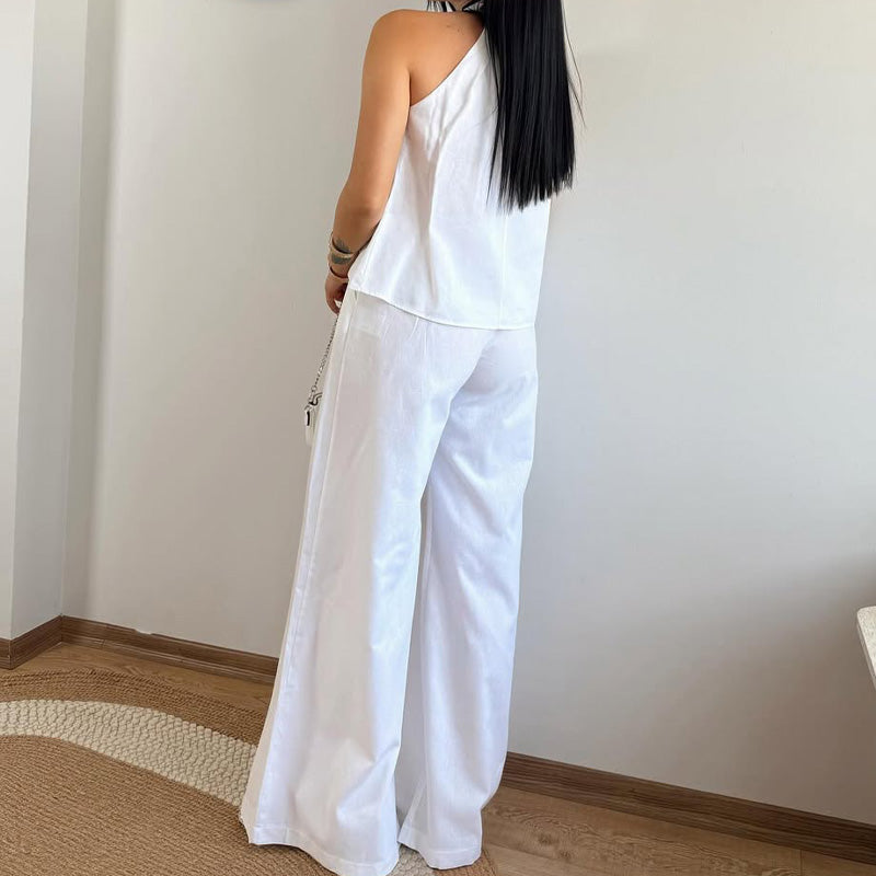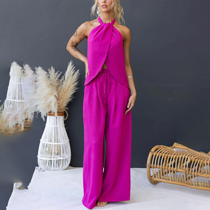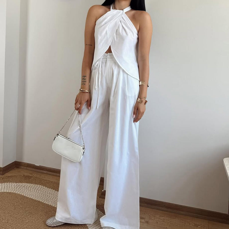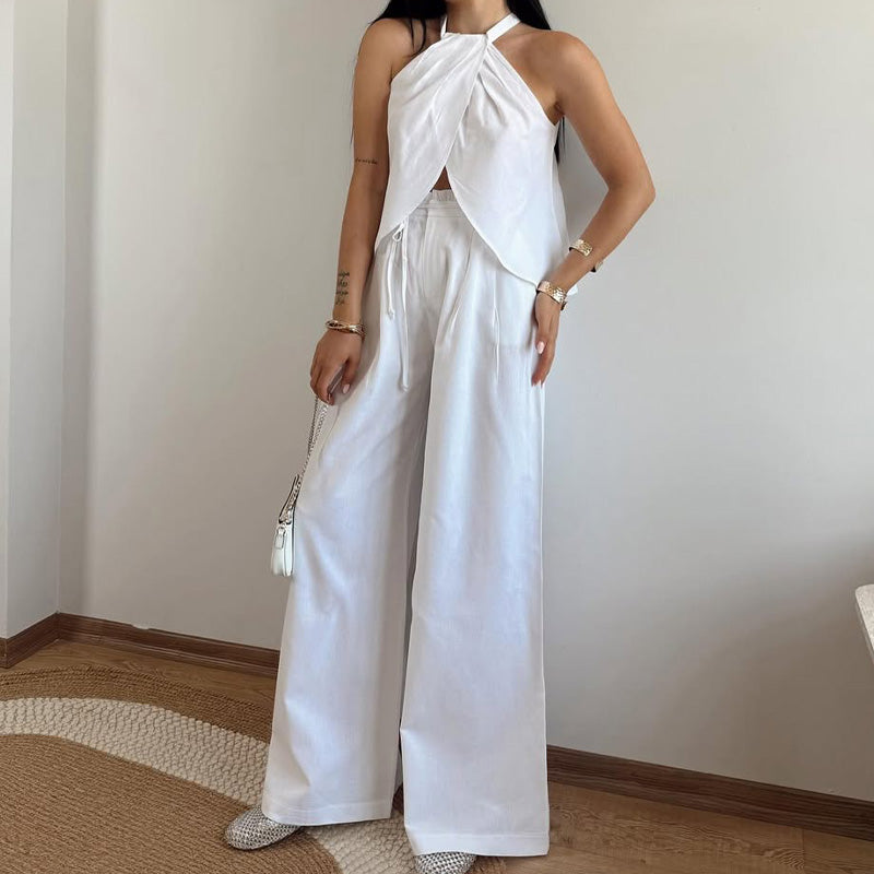 Casual Halter Top & Wide Leg Pants 2-Piece Set for Women