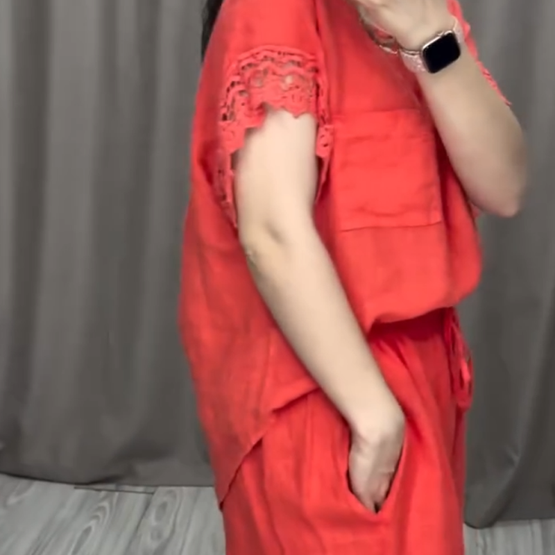 Package Includes: 1*Casual Short Sleeve Top & Drawstring Pants Set