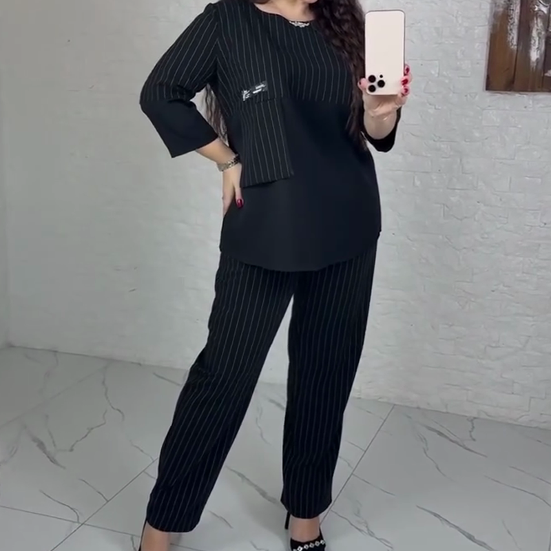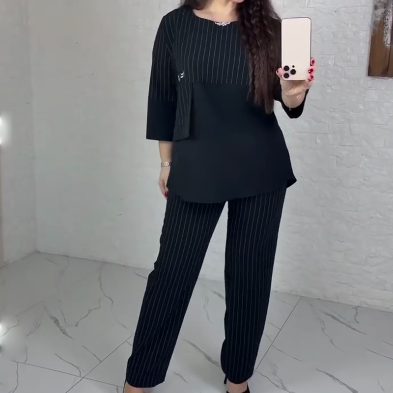 UNIFIED SILHOUETTE WITH CLEAN LINES: The striped trousers mirror the top’ s clean lines and classic color scheme, creating a fully coordinated look from top to bottom. Make this set perfect for both relaxing at home and stepping out for a casual walk or errand.