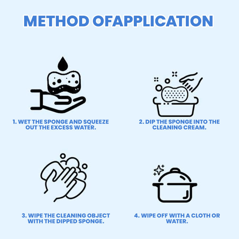 EASY CLEANING - This cleaning cream makes housework easy and efficient. Simply apply and scrub with the sponge included in the cleaning cream jar to easily remove dirt, grease and grime.