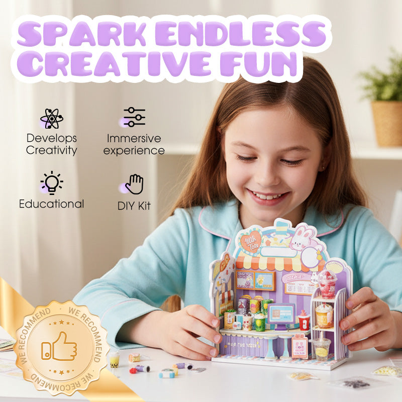 HANDS-ON DIY FUN - Fosters creativity and fine motor skills as children assemble their very own miniature milk tea shop and craft unique drink creations, providing a rewarding and educational hands-on experience for them.