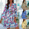 Floral Print V-Neck 3/4 Sleeve Casual Beach Dress