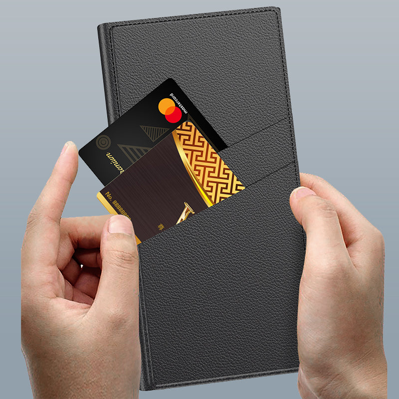 Introducing our Folding Stand Phone Case with Card Holder for Samsung S24Ultra. This versatile case provides superior device protection and convenient functionality. With a built-in card holder and foldable stand, it enables hands-free viewing and essential carrying. Crafted with high-quality materials, it combines style, durability, and practicality, an essential accessory for your Samsung S24Ultra.