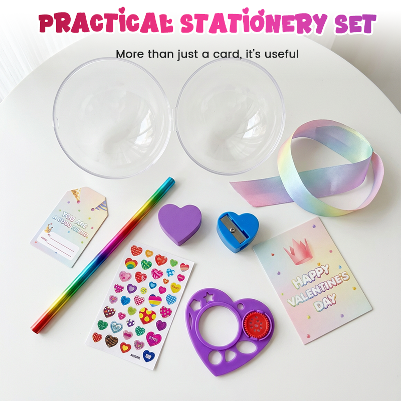 PRACTICAL STATIONERY TREASURES - Go beyond simple cards with gifts kids can actually use. This set includes fun and functional items like rainbow pencils and creative erasers, perfect for schoolwork, art projects, and playtime.