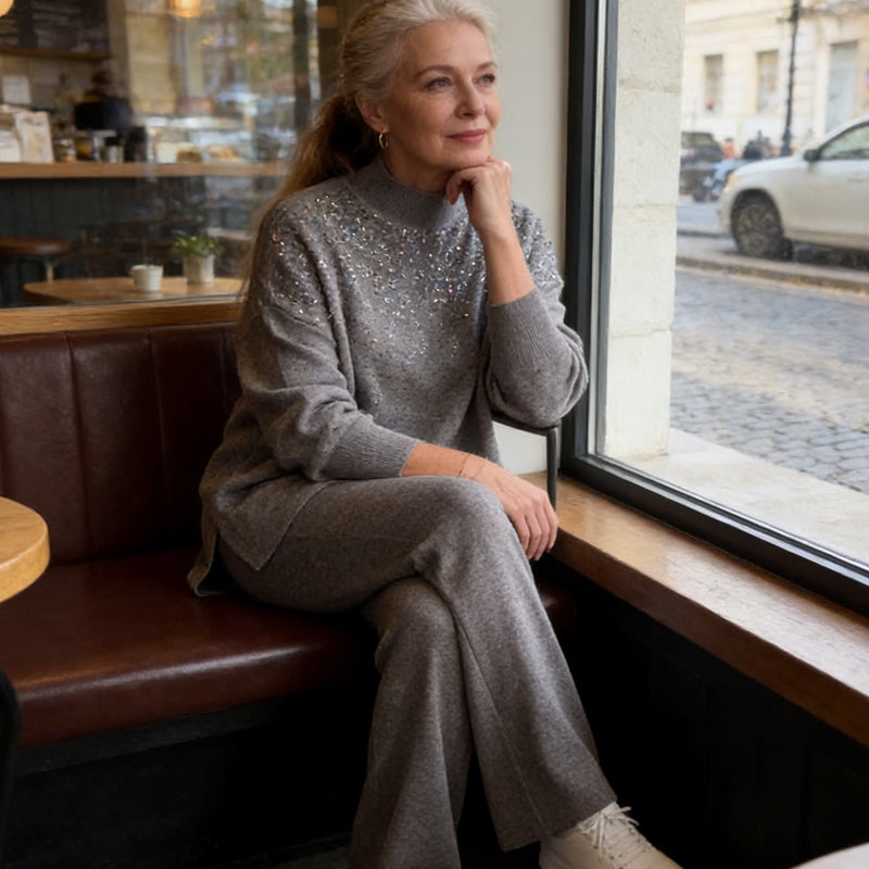 Rhinestone Embellished Knit Sweater & Pants Set
