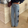 Star Patch Rhinestone Wide-Leg Denim Pants