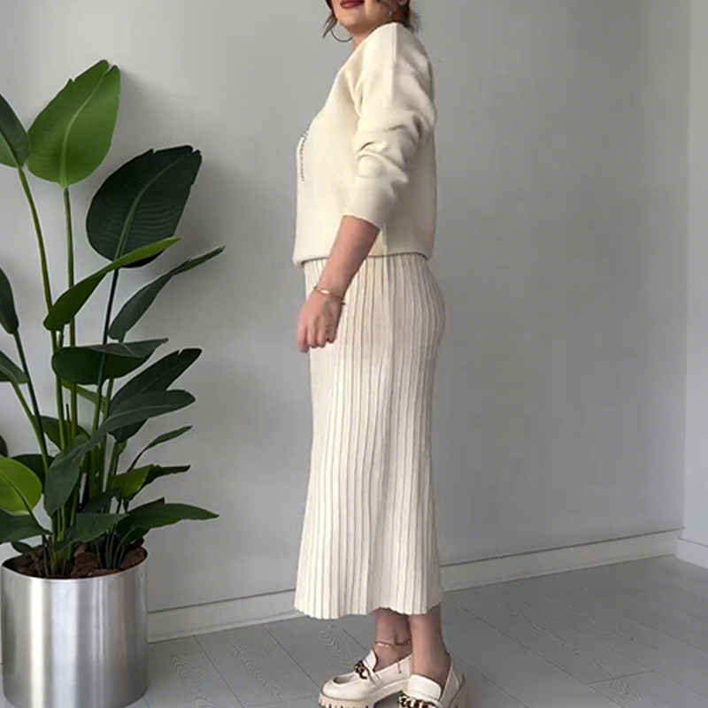 CLASSIC PLEATED SKIRT - Features timeless vertical pleats that create a slimming effect and add graceful movement as you walk, offering a polished and sophisticated foundation for your entire look.