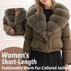 Women's Short-Length Fashionable Warm Fur-Collared Jacket(Icelandic white duck down)