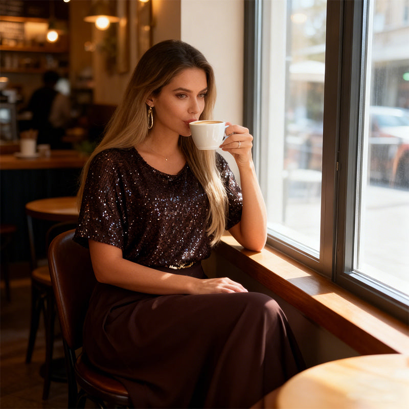 RICH BROWN HUE: Offers a warm and versatile color that pairs beautifully with a wide range of tops. This sophisticated shade serves as a perfect neutral base, allowing for effortless styling with both bold and subtle colors.