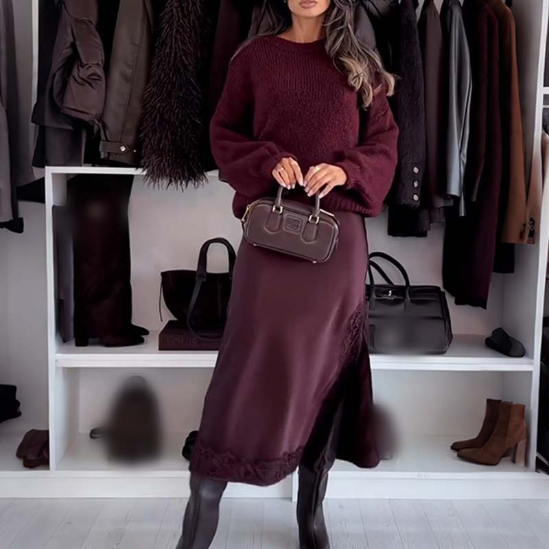 Package Includes: 1 * Women's Sweater & Lace Trim Slip Dress 2-Piece Set