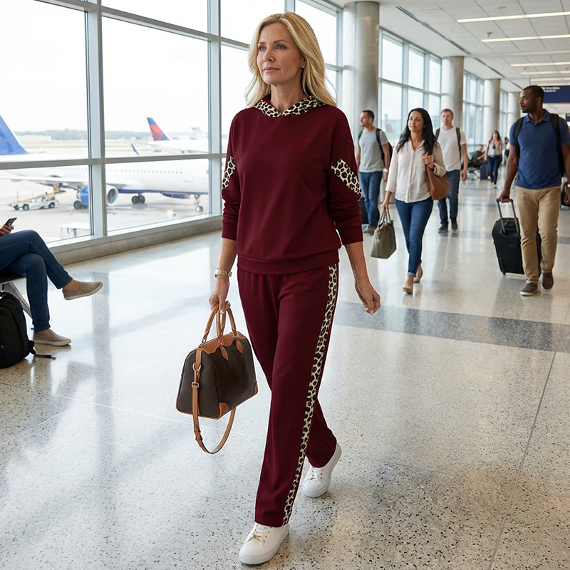 CHIC LEOPARD PRINT ACCENTS - Adds a trendy, wild touch to your look, elevating a classic tracksuit into a fashion statement that stands out whether you're lounging at home or out and about.