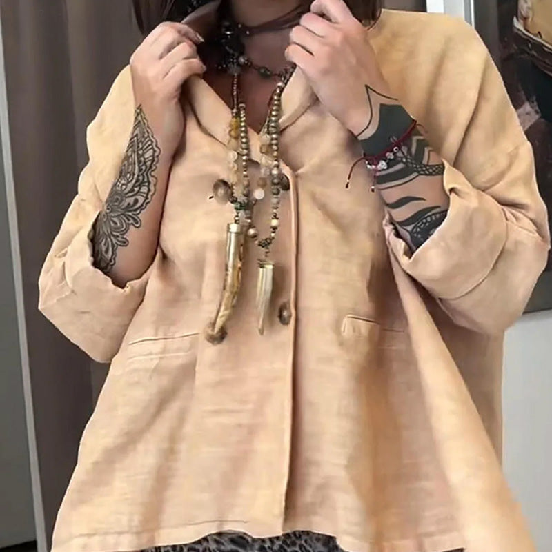 ELEGANT LAPEL DESIGN – The refined lapel collar brings a touch of sophistication to casual wear. Designed to enhance both work and leisure outfits, this detail elevates the overall look while maintaining an effortless style. It creates a flattering neckline that transitions seamlessly from day to evening occasions.