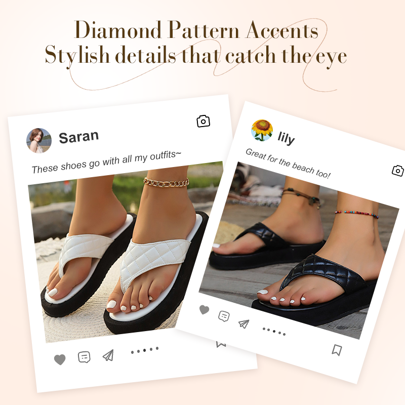 THICK SOLE DESIGN – Cushions impact and adds height. Built with a supportive thick sole, these flip flops provide extra comfort while walking. The height boost subtly elongates the legs, while the cushioned base reduces foot fatigue during extended wear. Ideal for daily use, indoors or outdoors.