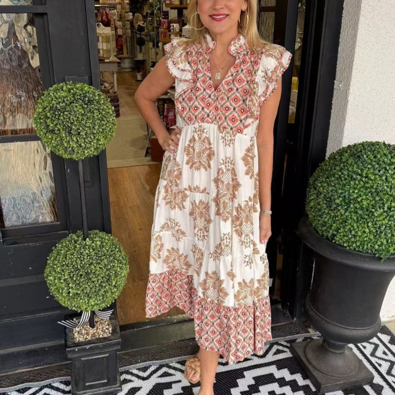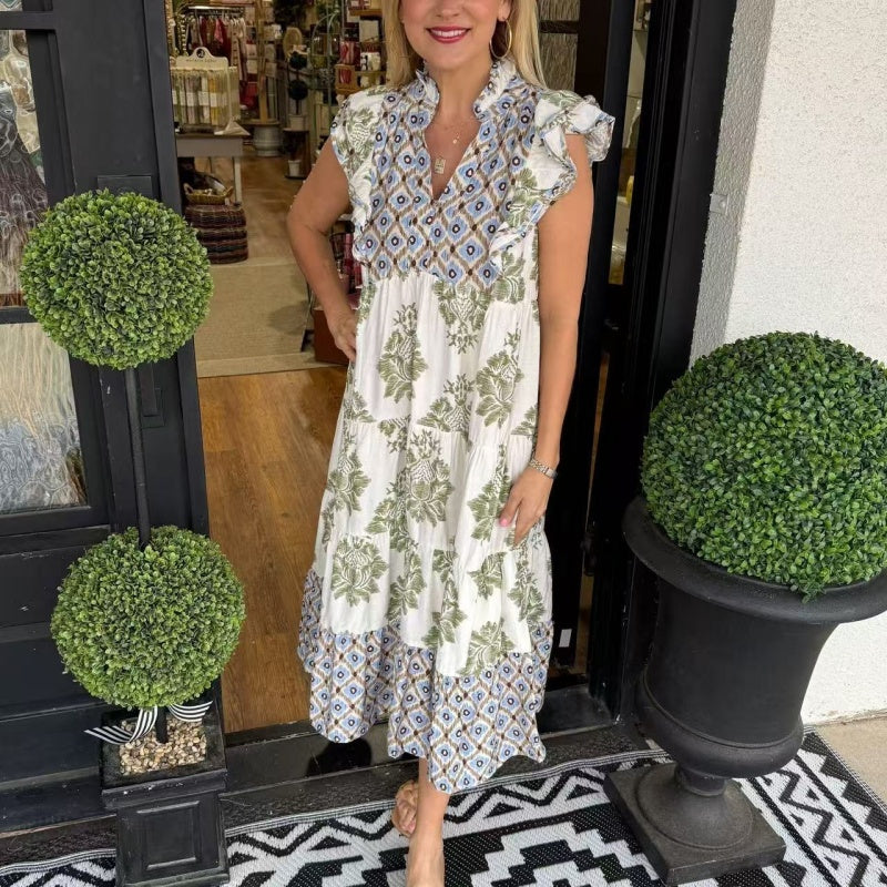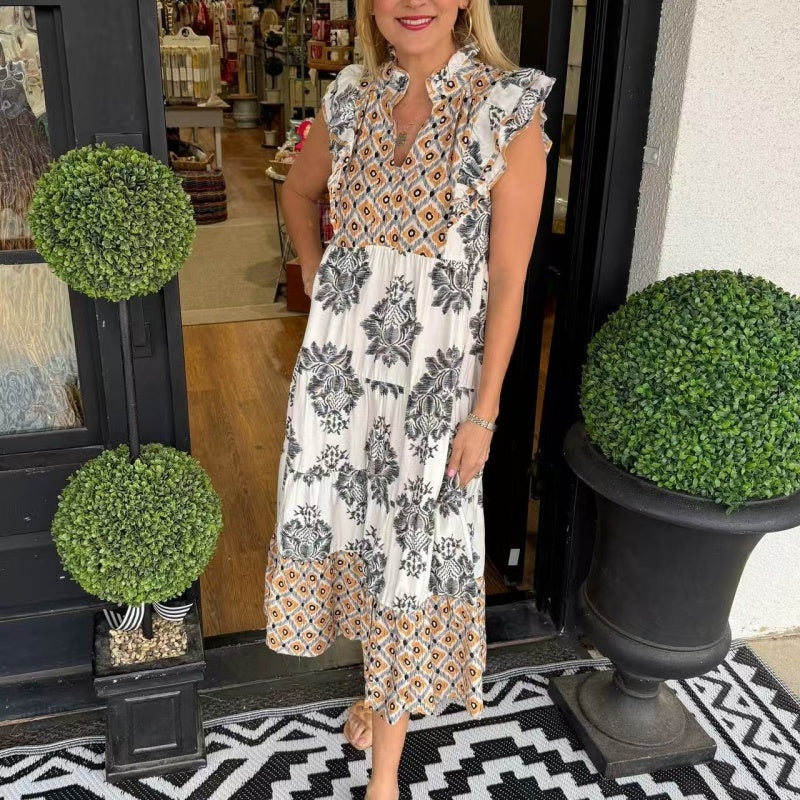 🏖️Summer Hot Sale 49% OFF🌼Women's Elegant Printed Ruffle Sleeveless Dress