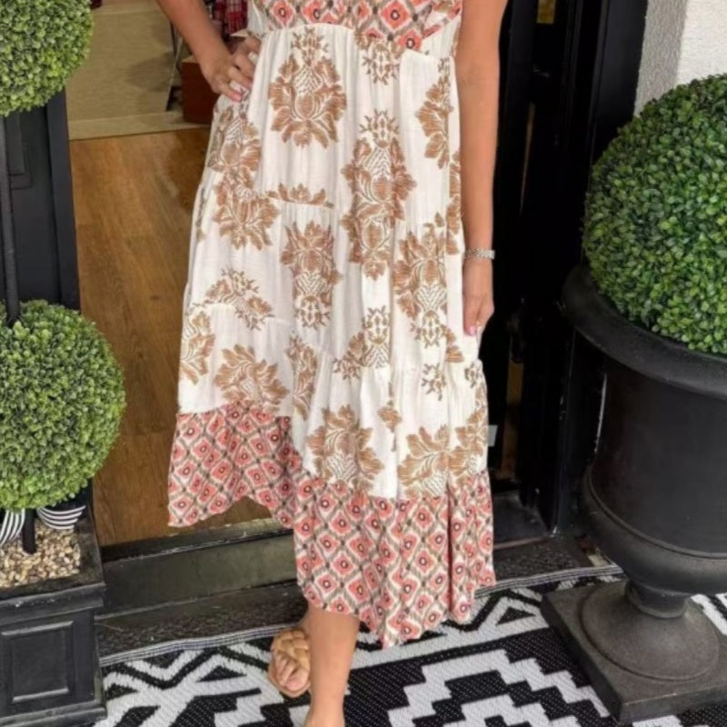 CHIC PRINT DESIGN: The eye-catching print adds a touch of elegance and vibrancy, making this dress perfect for casual outings, vacations and special occasions.