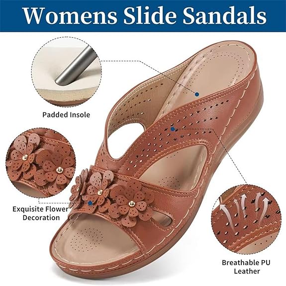 EFFORTLESS STYLE MEETS COMFORT – Floral-decorated PU upper pairs with a cushioned rubber sole for all-day ease. Slip-on design offers hassle-free wear, while the open toe adds breezy sophistication. Perfect for strolls, brunches, or beach days—effortlessly chic, every step.