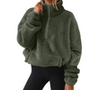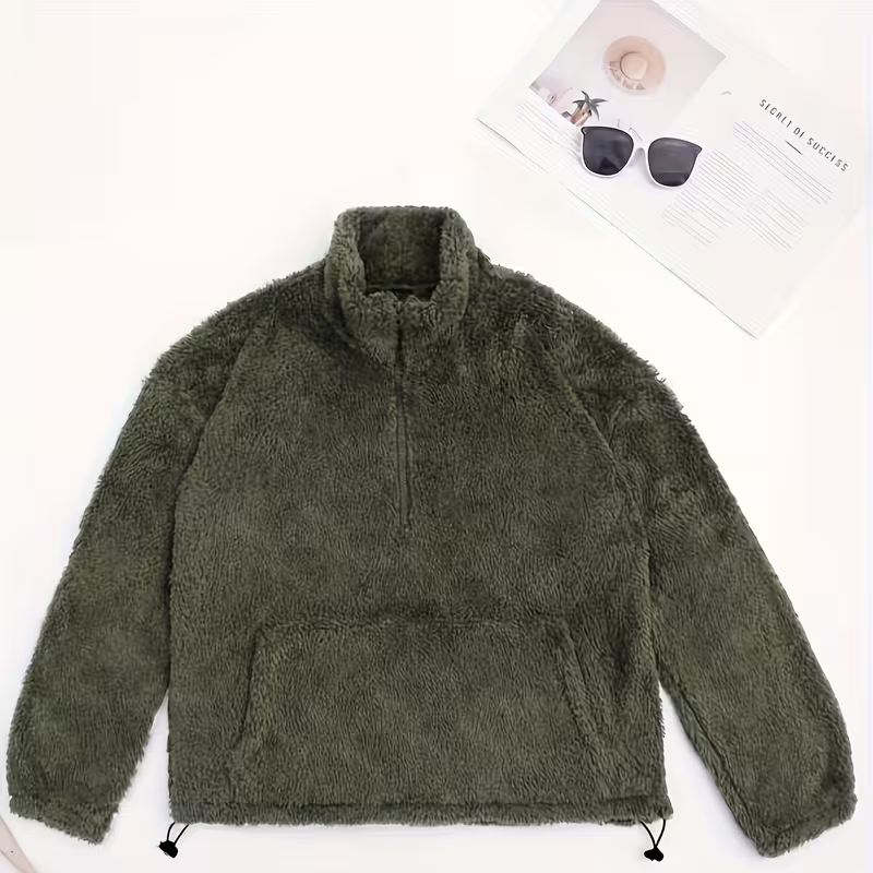 Package Includes: 1×Women's Fuzzy Half-Zip Stand Collar Sweatshirt