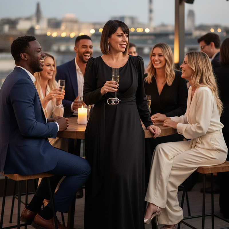 DECORATIVE WAIST BUCKLE - A stylish metal buckle cinches the waist, creating a flattering hourglass shape. This eye-catching detail elevates the dress's simple elegance, adding a touch of modern sophistication without needing extra accessories.