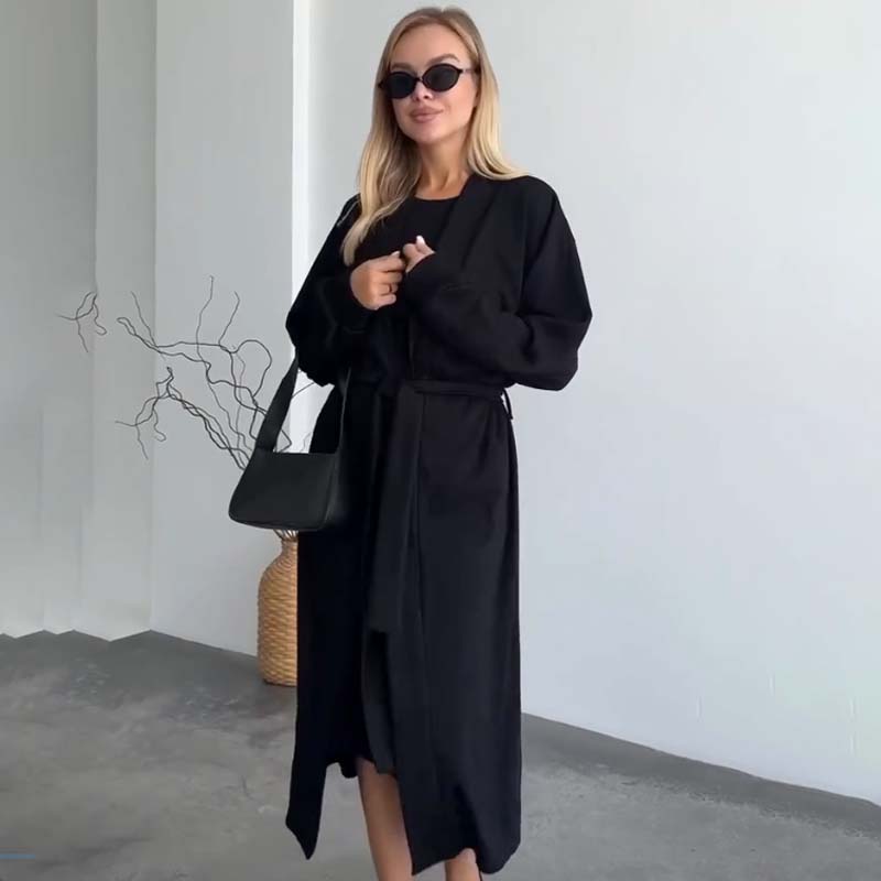 ADJUSTABLE TIE-BELT DESIGN – The longline layer includes a matching tie-belt, enabling an adaptable fit and the option to define your waistline. This feature allows for cinching the outer piece for a polished silhouette or wearing it flowing for a relaxed style. The flexible tie-belt enhances garment versatility.