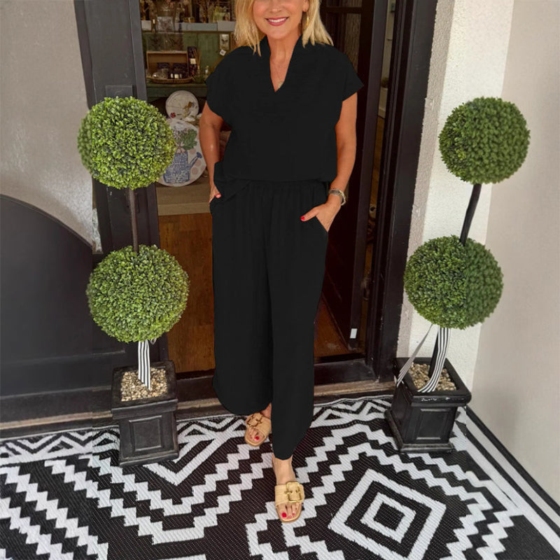 Package Includes: 1* Women's Solid Color Casual Two-Piece Set