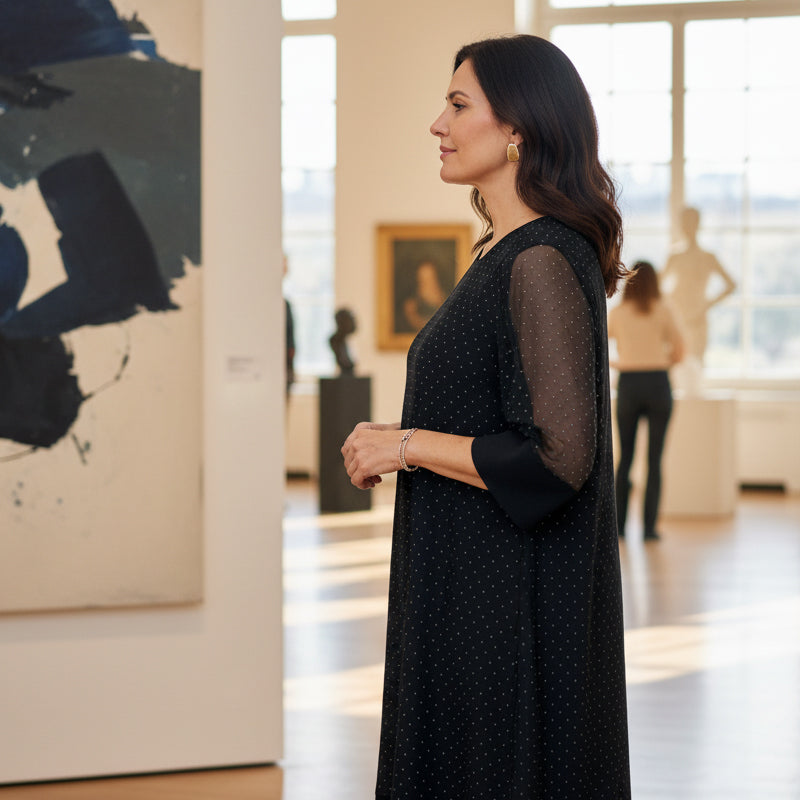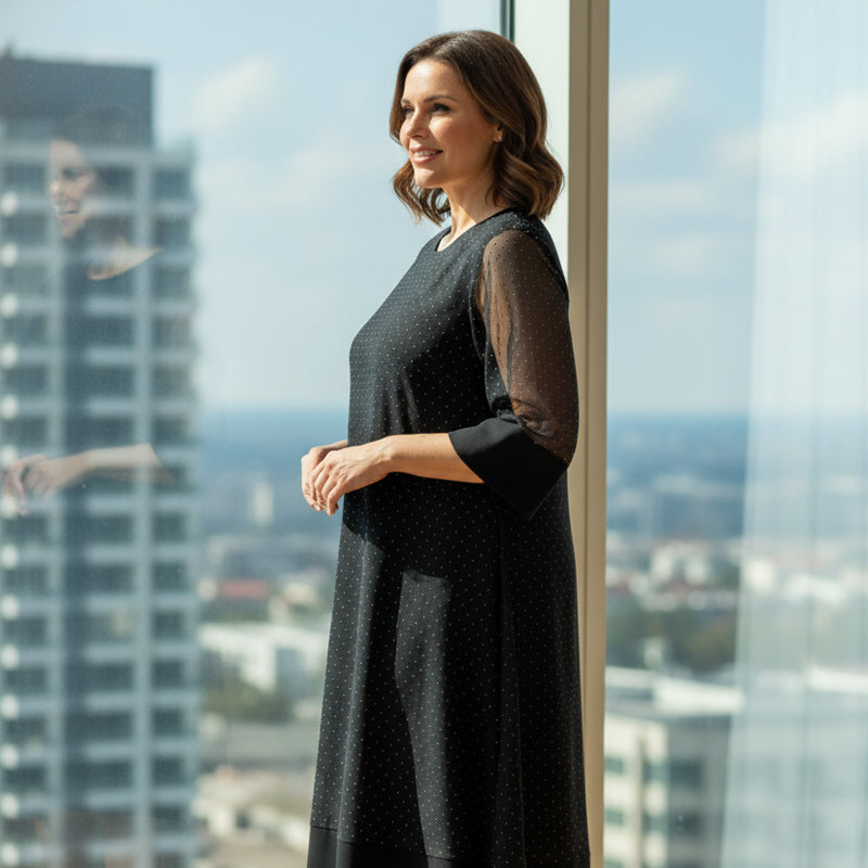 RELAXED A-LINE FIT: Designed to drape gracefully over your curves, the loose A-line silhouette offers unrestricted movement and a flattering fit. It ensures exceptional comfort without sacrificing its chic, sophisticated appearance for any body type.