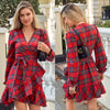 Women’s Stylish V-Neck Plaid Print Dress