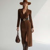 SLIT DETAILS: The dress features stylish slits on both the front and sides, adding a subtle yet edgy touch to the overall design. These slits offer extra freedom of movement while keeping the look sleek and modern.