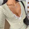 Women’s V-Neck Lace Patchwork Long Sleeve Top